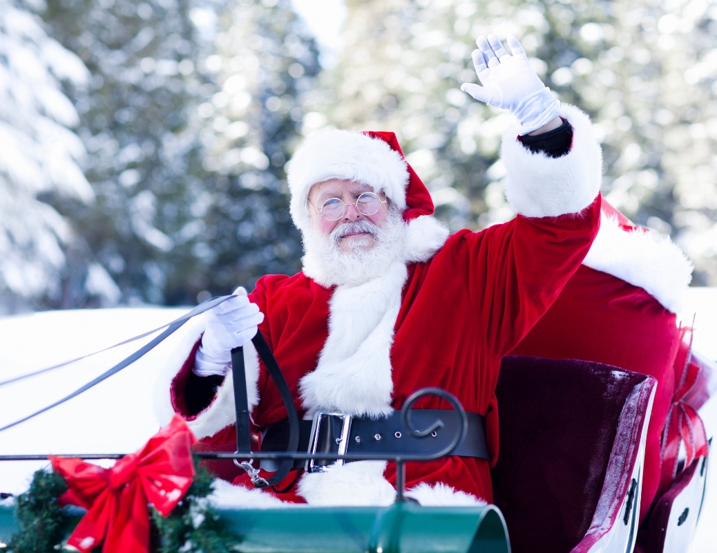 Le Père Noël fait une halte magique à la montagne, accompagné de son invité spécial, de ses joyeux lutins et de nos mascottes!